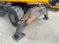 Nice JCB JS160E Wheeled Excavator. Machine from 2005 with Blade and outriggers, Adjustable VA-boom, extra-hydraulic functions on the stick, Bucket and quick coupler and 445/70R19.5 Michelin tires.