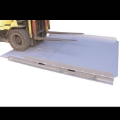 En praktisk lösning för att snabbt lasta ut ur containrar. Rampen lyfts enkelt med truck och låses fast med medföljande kedja.