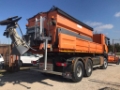 Además, incluye esparcidor de sal Bucher modelo UH4000 A/ID (año 2019), con capacidad de 3.000 litros (9 m³) y peso de 1.950 kg, ideal para la distribución uniforme de sal y fundentes.
