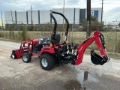Differential Lock, Reverse Drive Mode, Hydrostatic Drive, 19 kW Engine, 2023 US EPA Label, CARB Compliant, Mahindra 23L Loader w/Joystick, Quick Coupler, 48 in Bucket, Mid-Mount Remotes, 2 Rear Remotes, 540 PTO, 3-Point Hitch, Mahindra 23B Backhoe Attachment With 12 in Bucket, 215/50-10 Front Tires, 305/60-12 Rear Tires. to see more information.