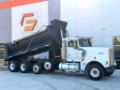 2001 Kenworth W900. Cummins N14. K & H 18 Ft Steel Body. High Lift Gate. Round Bottom. Eaton RTO Auto Shift Transmission. 46,000LB Rears. 2 Steerable Air Lift Axles. 18,000LB Steer Axle. Only 733,000 Original Miles. Chalmers Suspension. Dual Steering Gearboxes. Electric Roll Tarp. Loaded VIT Interior. Gauge Package. 385/65R22.5 Steers. 11R22.5 Drives. Engine Brake. Cruise Control. Dual Breathers. Clean Kenworth W900 Dump Truck