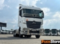 Construction-site filter, Engine version, Euro III, Cyclone filter for coarse dust, Noise encapsulation in accordance with ECE NGL, Wheel arrangement 6x4, Mercedes PowerShift 3, Transmission oil cooling, Front axle 8.0 t, Front axle, straight version, Rear axle, crown wheel 440, hypoid, 13.0 t, Cable remote control for air suspension, Cab mountings, comfort, steel-sprung, Air suspension, rear axle, Axle load measuring device, Alum. wheels 9.00 x 22.5, Dura-Bright, Alcoa, Water-type secondary retarder, Frame overhang 750 mm, Wheelbase 3250 mm, Main tank, left, Fifth-wheel coupling ex factory, Fifth wheel coupling height = 185 mm, Fifth wheel coupling, manually lubricated, Fifth wheel coupling, standard, Jost JSK 37C, Weight variant 26.0 t (8.0/10.5/10.5), Vehicle, for left-side traffic, Front underride guard (ECE), aluminium, Tilting sunroof, electric, L-cab StreamSpace, 2.50 m, level floor, L-cab, Cab width 2.50 m, StreamSpace, Cab tilting mechanism, mechanical-hydraulic, Wind deflector over 4 m, movable, side deflectors, Windscreen, tinted, with filter band, Front mirror, heated, Air horn, Locking system, with central locking, Extended central locking, Luxury bed, top, wide, with levelling control, Luxury bed, bottom, Sunblind, side, driver's side, Drawers, under bed, Stowage flaps, above windscreen, Pull-out refrigerator, under bed, Air conditioning system, Driver's suspension seat, standard, Electronic braking system with ABS and ASR, Reversing buzzer, Fog lamps, LED daytime running lamps, LED tail lights, Lane Keeping Assist, Attention Assist, Airbag, driver, Cruise control, Floor variant, flat floor